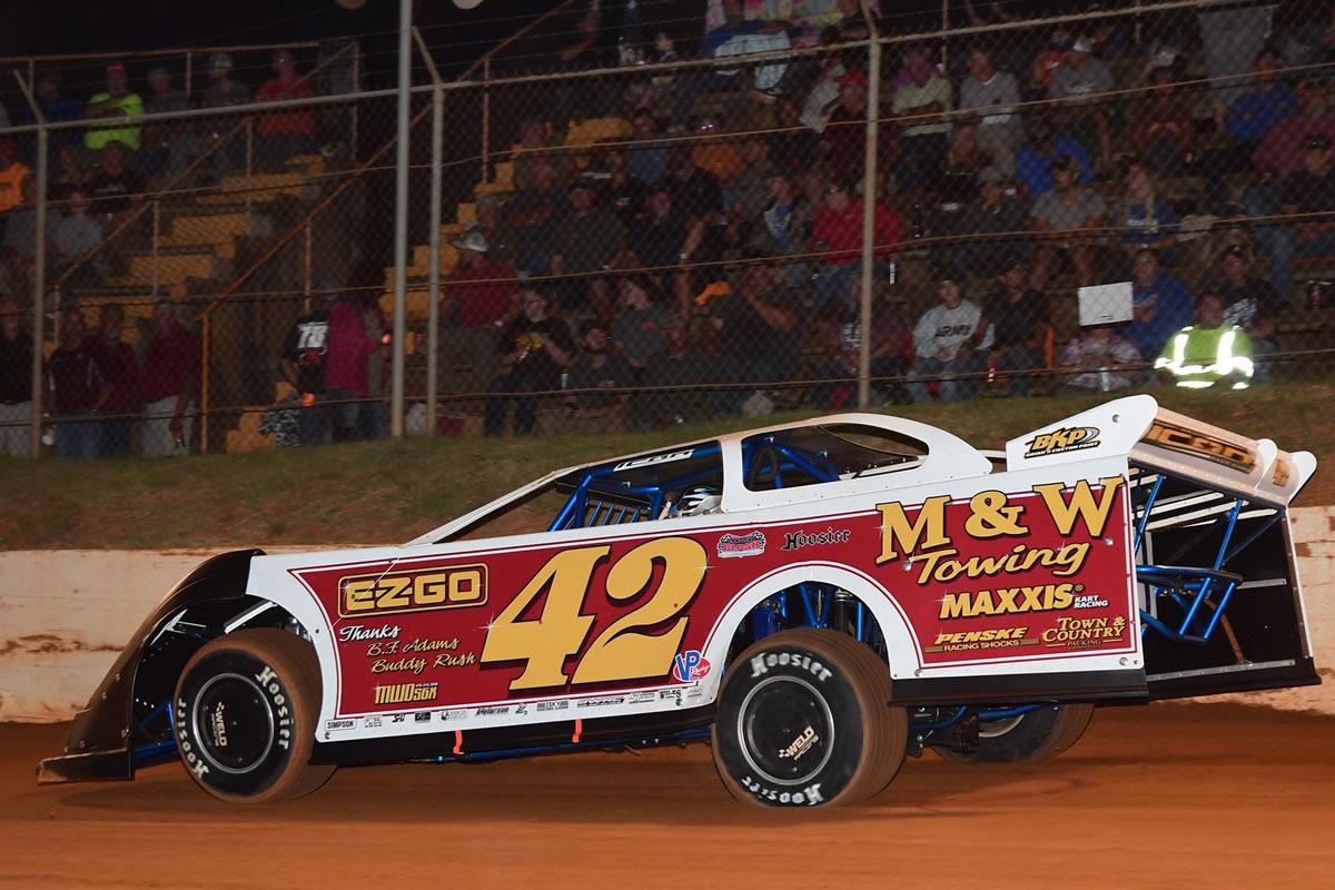 On Saturday afternoon Cla Knight was one of 18 Carolina Clash Super Late Model Series entries on hand at Laurens County Speedway (Laurens, S.C.) for the Great Southern Homes Shrine Race. With time trials setting the grid for the A-Main, Knight posted the eighth fastest time overall. With $3,500 on the line, Cla held his spot for all 35 laps to register an eighth place finish. (Joey Grubb photo)
