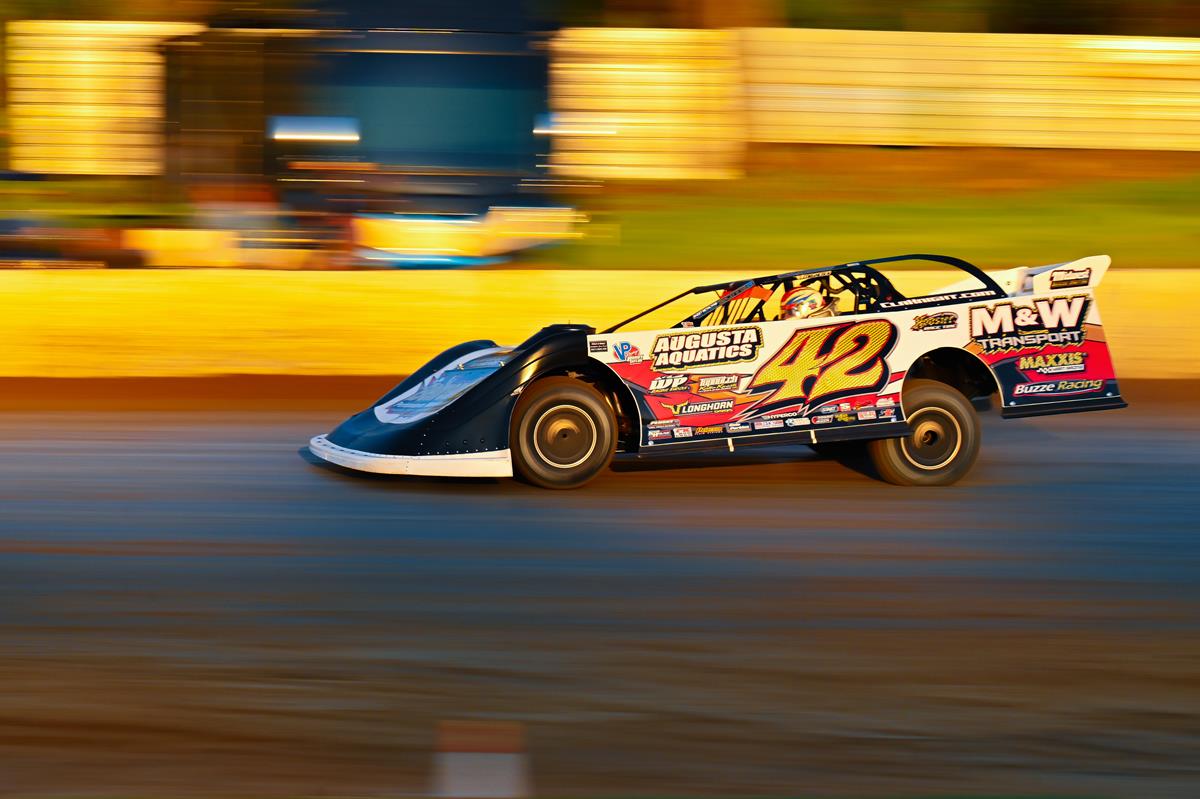 Among 34 Hunt the Front Super Dirt Series Late Models, Knight made up two positions in his B-Main which earned him a feature starting spot in 13th. In the 30-lap A-Main, Cla recorded a 17th-place finish.